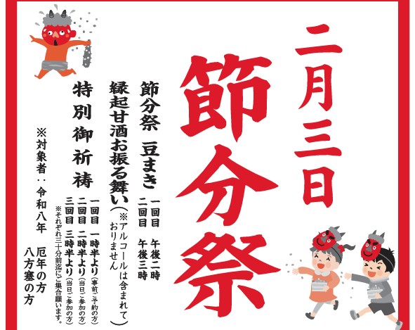「節分祭」と「特別御祈祷」のご案内 令和8年@中田神社